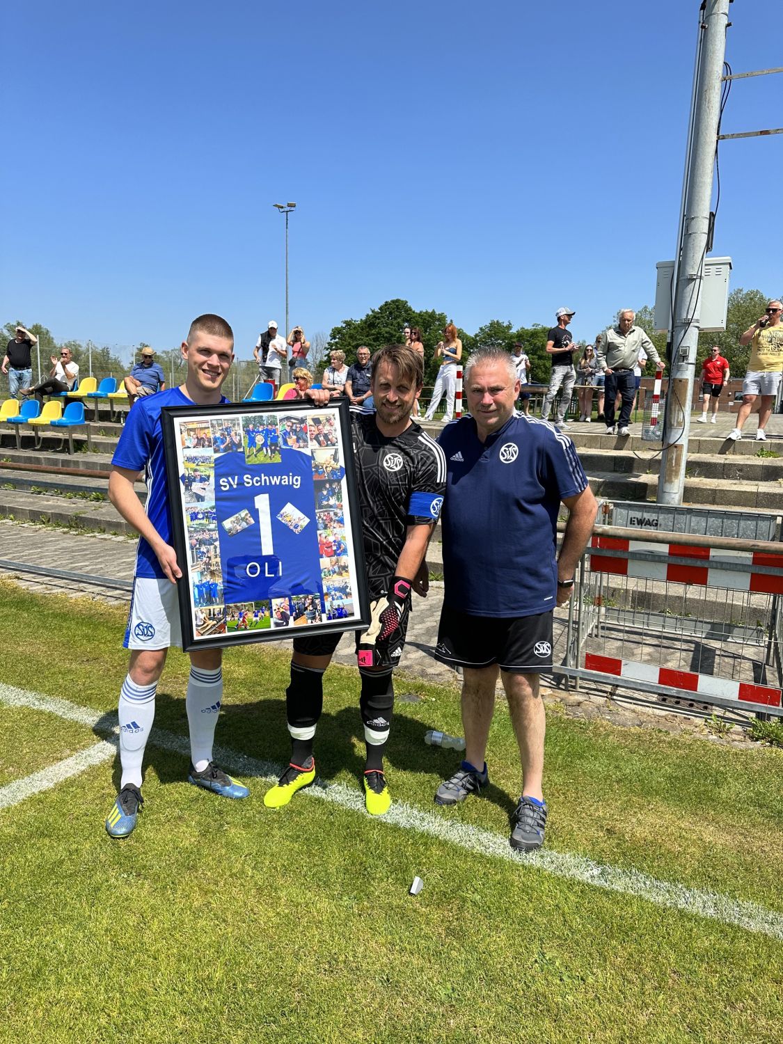 Als dann gleich nach der Halbzeit erneut Toptorjäger Rzonsa mit Saisontor 25 die Gästeführung ausbaute, war das Spiel entschieden. Die Gastgeber waren zwar um den Anschluss bemüht, jedoch sollte kein Treffer mehr fallen und der Schwaiger Torjäger Weber konnte seinen bisherigen 18 Saisontreffern keinen mehr hinzufügen. Auch Deuerlein und Liedel scheiterten mit ihren Versuchen. Mit der Einwechslung der Jugendspieler Klaiber und Reiner setzte Trainer Daschner noch ein Zeichen für den Nachwuchs. Höhepunkt zum Ende des Spiels war dann die Auswechslung von Oliver Haßler, der zuvor noch mal sein ganzes Können zeigte und unter großem Applaus den Platz verlassen hat. Danke Oli.