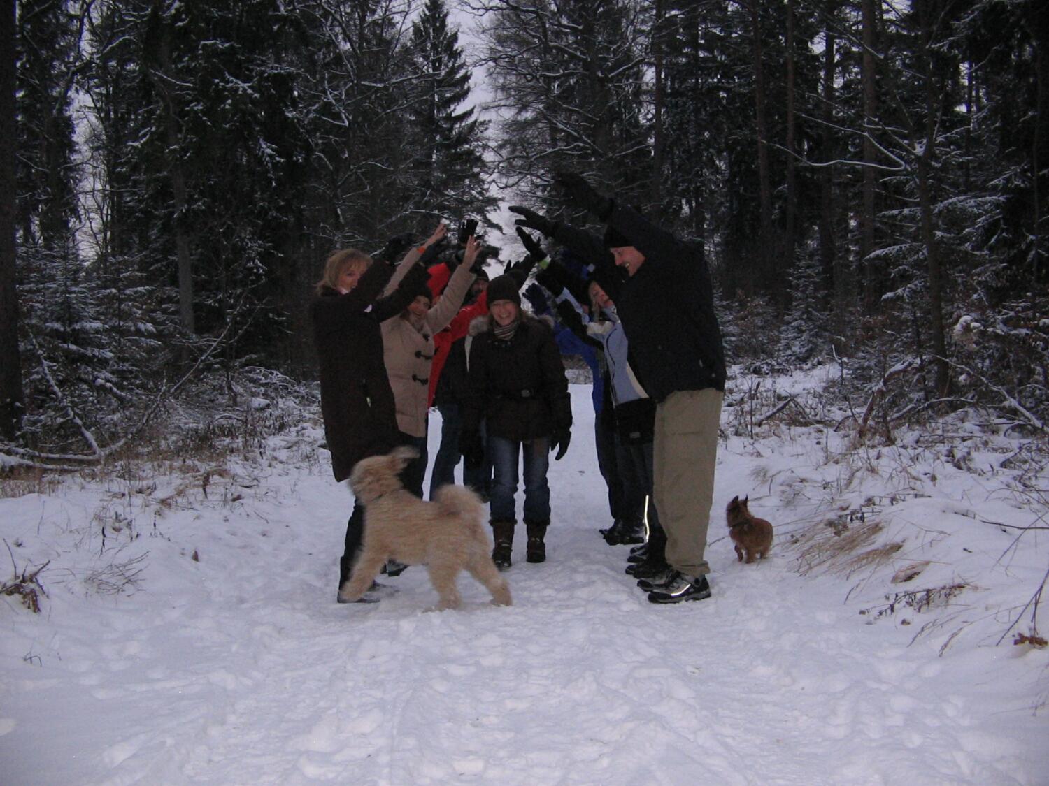 Die Winterwanderung war wie immer ein großer Erfolg. Bei wunderbarem Winterwetter zogen 22 AH´ler und AH´lerinnen mit immerhin 5 Hunden von Behringersdorf nach Oedenberg. Nicht zuletzt dank der großzügigen Spende von Peter und Bettina konnten wir es uns im "Roß" so richtig gut gehen lassen. Immerhin noch die halbe Mannschaft war willens und in der Lage, auch den Heimweg zu Fuß zu bewältigen.
