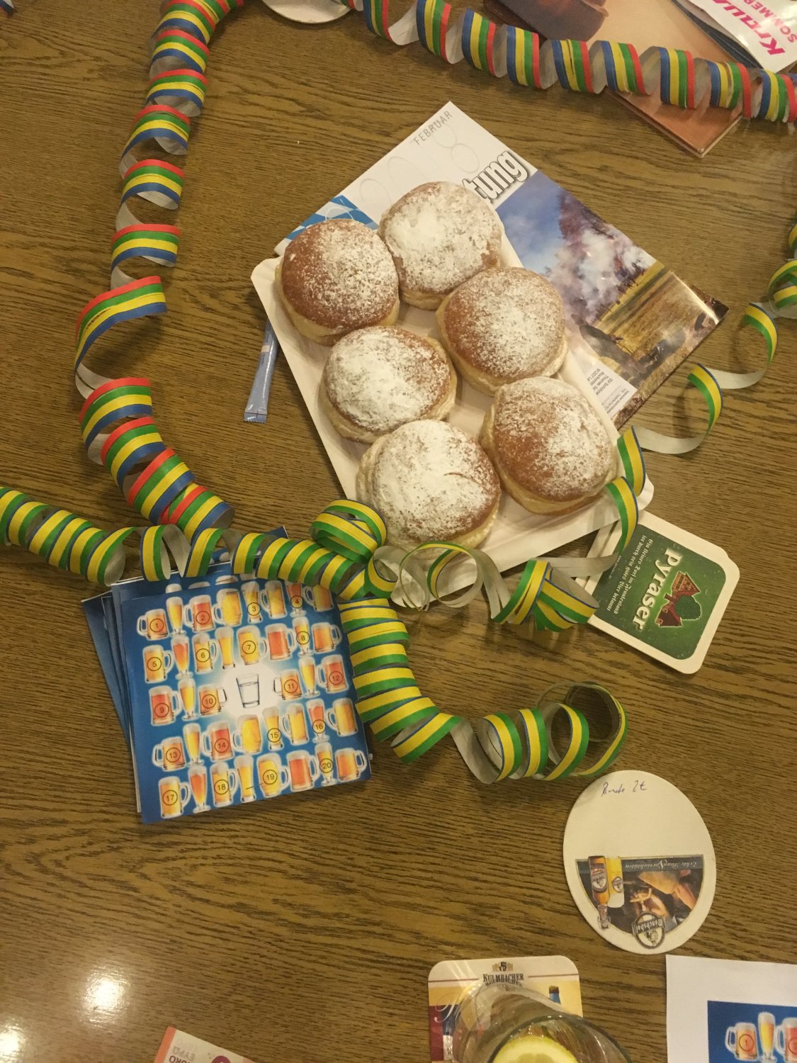 Mit den vom Thommi gespendeten Krapfen, Musik und kühlen Getränken feierte die Schützengilde den Fasching in geselliger Runde.