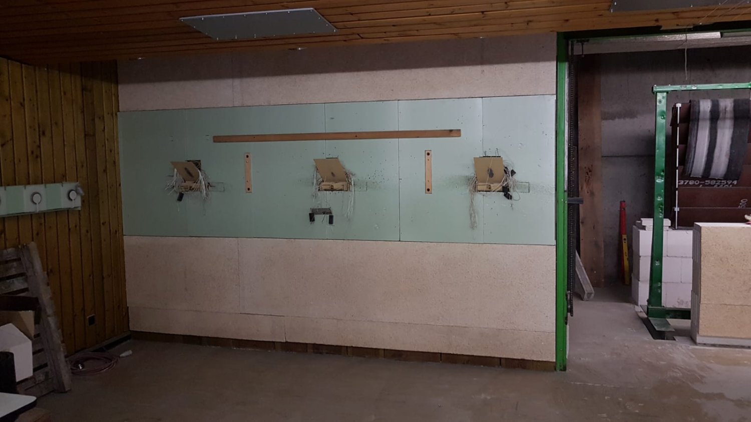 Die nächsten Arbeitsschritte sind getan. Der neue Geschossfang ist nun aufgebaut und Dämmplatten wurden montiert. Des Weiteren wurde ein „Lagerraum“ geschaffen, der mit einer Mauer extra abgetrennt wurde. Zusammen mit einem Sachverständigen wurde der bisherige Umbau und die noch ausstehenden Todos, aktuell besprochen, so dass ganz gezielt die weiteren Arbeiten durchgeführt werden können, damit wir endlich zur endgültigen Fertigstellung gelangen.