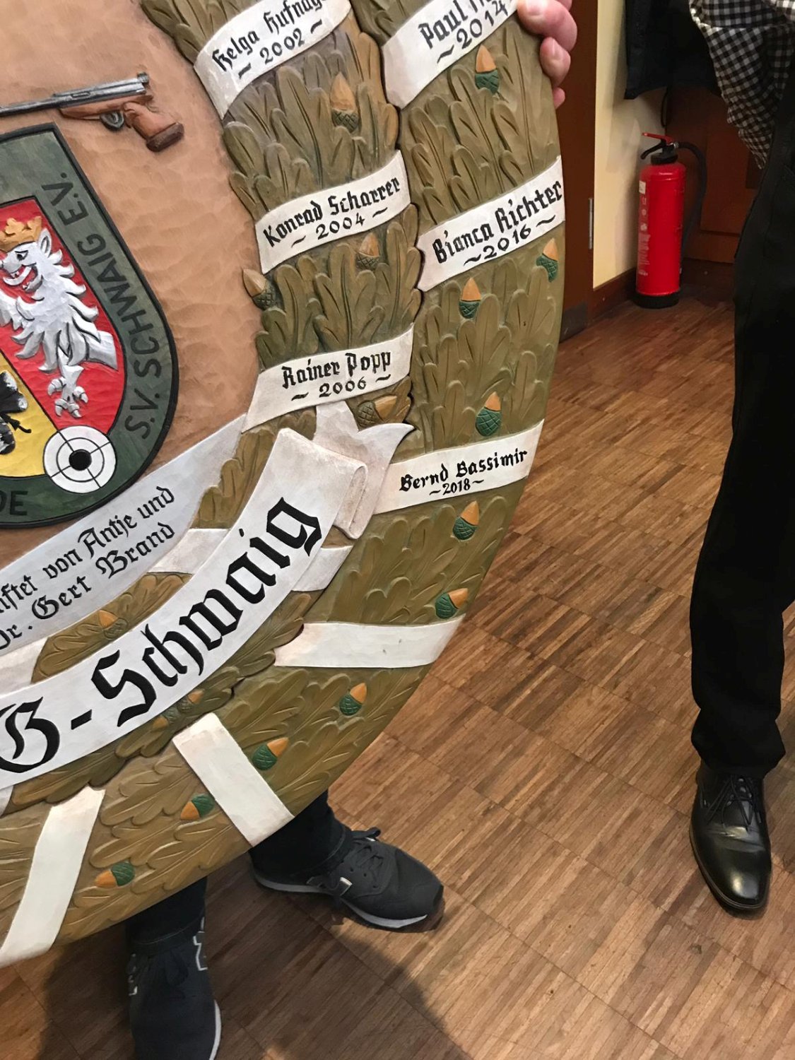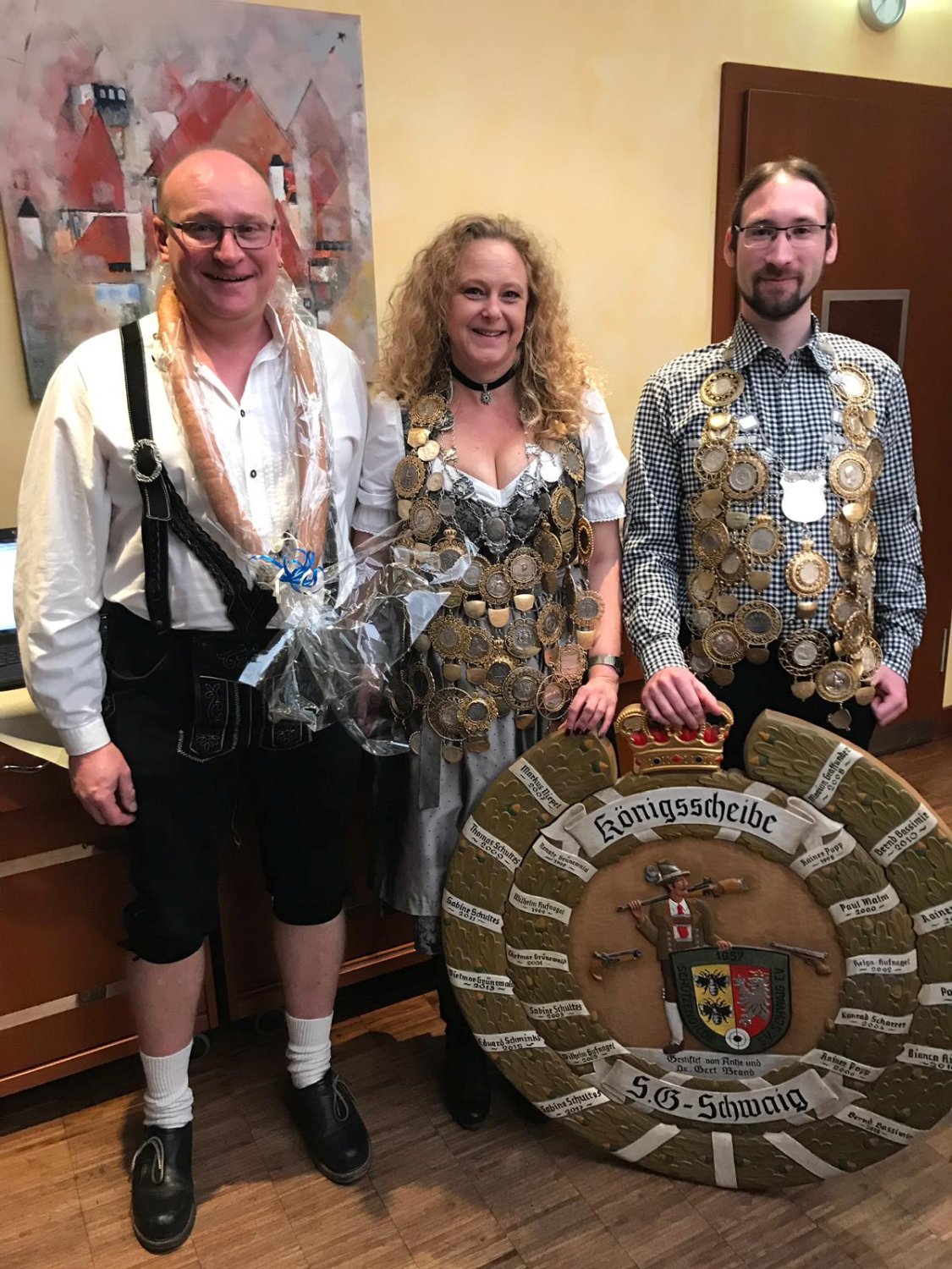Am Samstag, den 17.11.18 wurde der neue Schützenkönig der Schützengilde Schwaig in sein Amt gehoben. Bernd Bassimir erzielte heuer den bestplatzierten Königsschuss. Vizekönigin wurde Stefanie Niepel und gefolgt von Markus Niepel, der den dritten Platz erreichte.