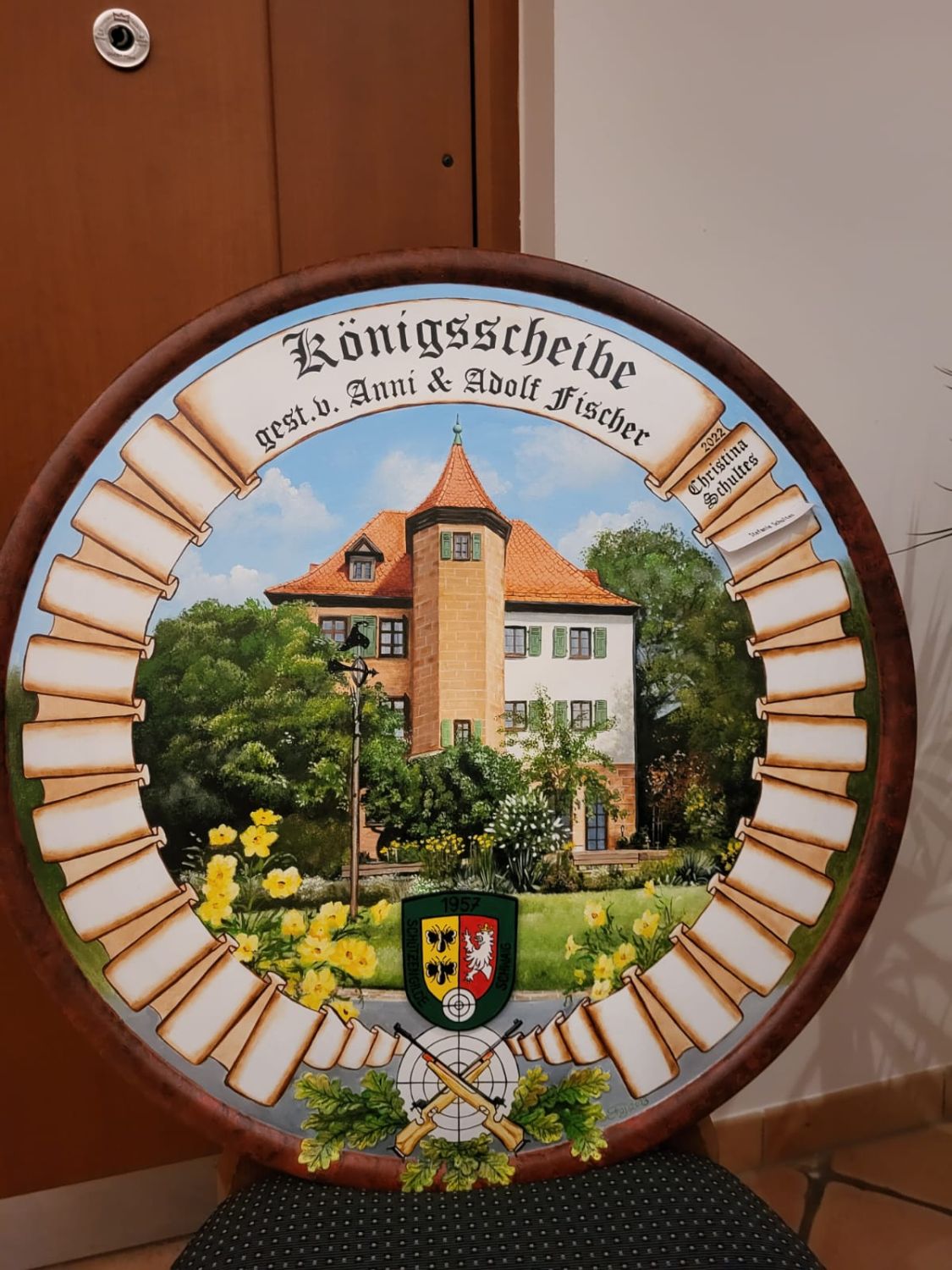 Vielen Dank nochmal an die Familie Adolf und Anni Fischer, die nicht nur die sehr schön gelungene Königsscheibe, sondern auch wie jedes Jahr den Ring Stadtwurst für den drittplatzierten König/in gestiftet haben.