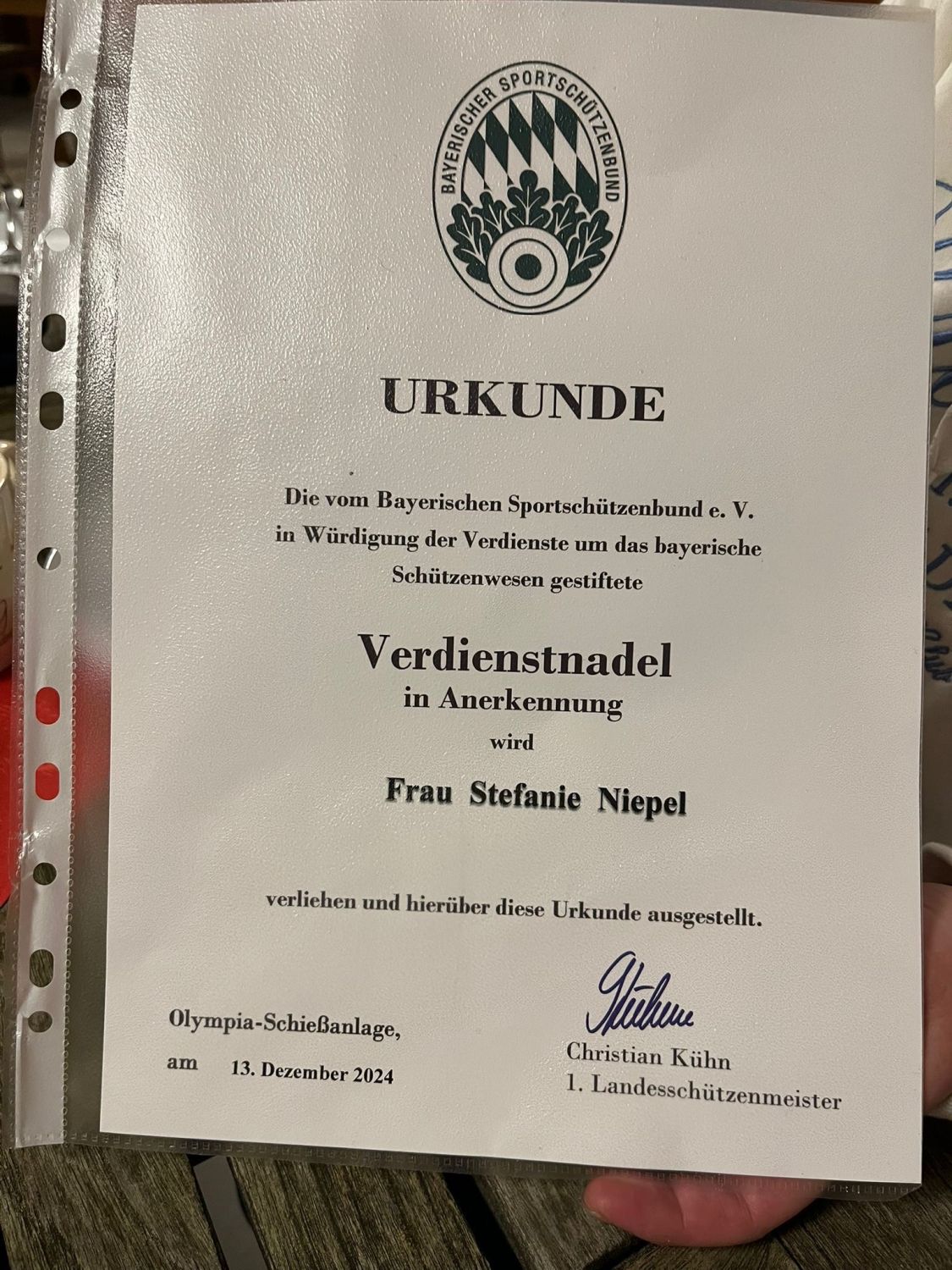 Für die ersten drei Plätze in Serie gab es Pokale, dann durfte jeder in der Reihenfolge wie geschossen wurde sich ein Geschenk vom Gabentempel holen. Vorher aber gab es noch besondere Ehrungen. Und als große Überraschung wurde unsere Stefanie Niepel auch geehrt und hat die Verdienstnadel vom Bayerischen Sportschützenbund aus München verliehen bekommen. Wir haben uns alle sehr darüber gefreut. Und sind stolz auch mit unseren Geschenken wieder heimgefahren. Es war eine schöne Feier nur schade, dass es nur so wenige Schützinnen nach Schönberg geschafft haben.