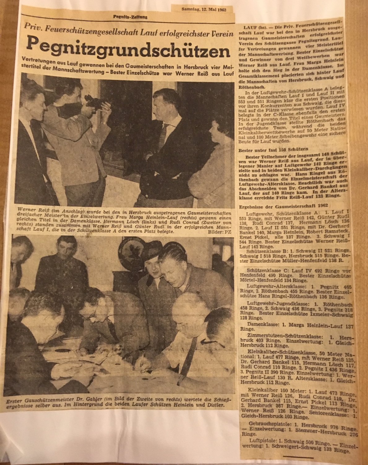 Aus diesem Anlass wurde ein Bürgerschießen durchgeführt, bei dem 19 Frauen und 27 Männer teilnahmen.