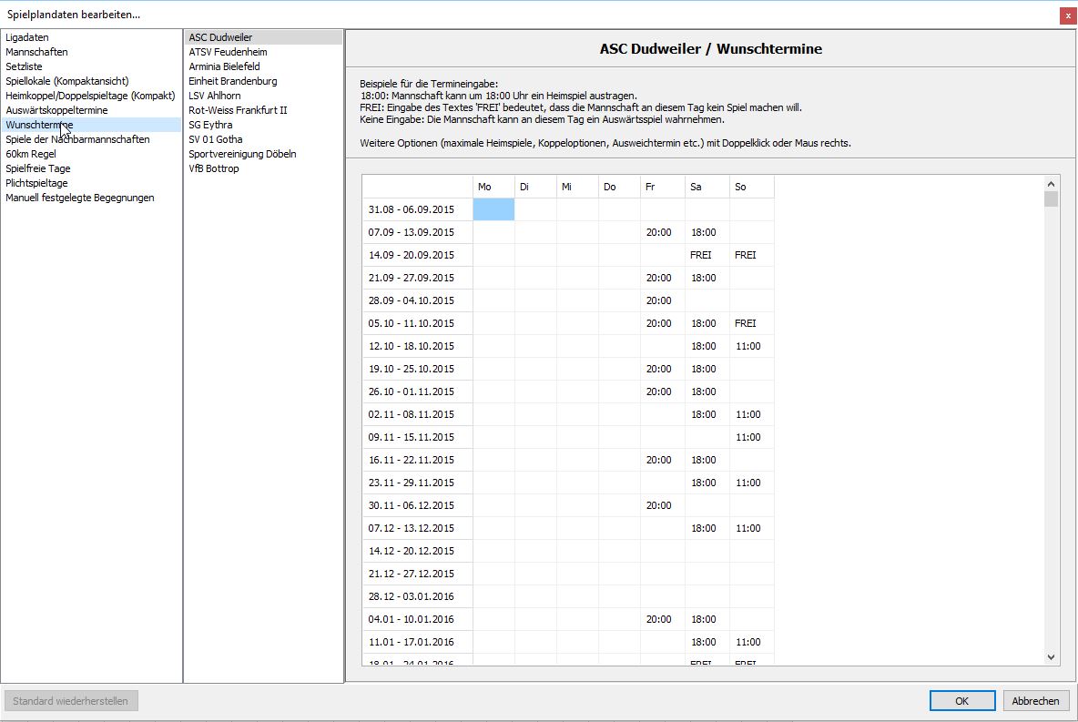 Für Vor- und Rückrunde kann festgelegt werden, welche Anzahl und gegen welche Mannschaften das Heimrecht gelten soll.